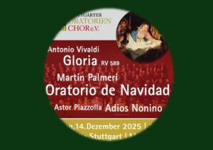 Vivaldi begegnet Palmeri... Programm: Antonio Vivaldi – Gloria RV 589 Astor Piazzolla – Adiós Nonino PAUSE Martín Palmeri – Oratorio de Navidad Mitwirkende: Zinovia Zafeiriadou Vidovič, Sopran Jasmin Hofmann, Alt[...]